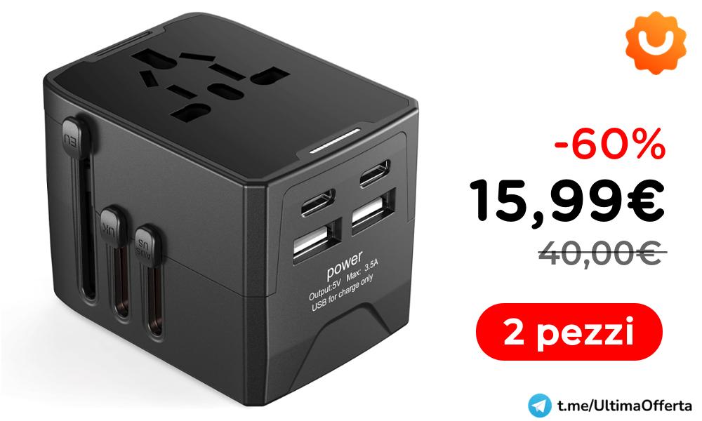 ๐ Adattatore Universale Viaggio con 2 USB A e 2 USB C