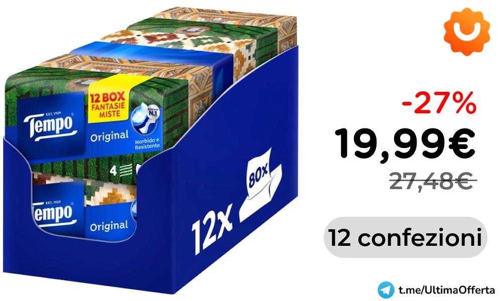 π§» Tempo Fazzoletti Box 4 Veli, 12x80 Pz, Grafiche Assortite