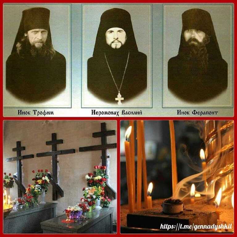 В эту ночь тьма попыталась погасить Свет. Сатанинским ножом были убиты трое насельников обители: иеромонах Василий, иноки Трофим и Ферапонт.