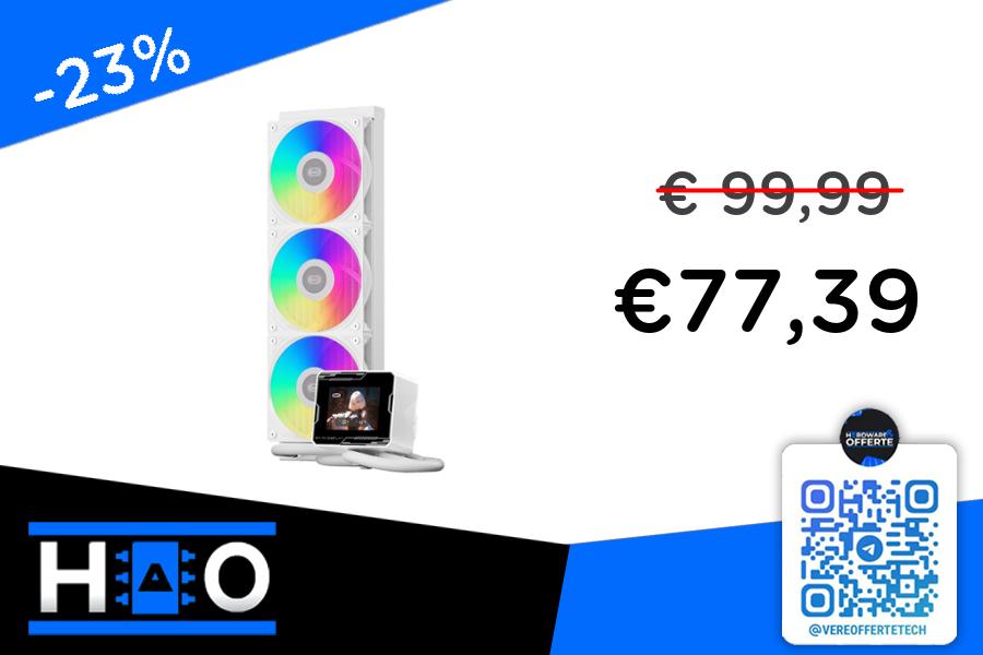 π AIO Full White da 360mm con display personalizzabile da 2.8" 60Hz e ventole 120mm 2200RPM da 75CFM.