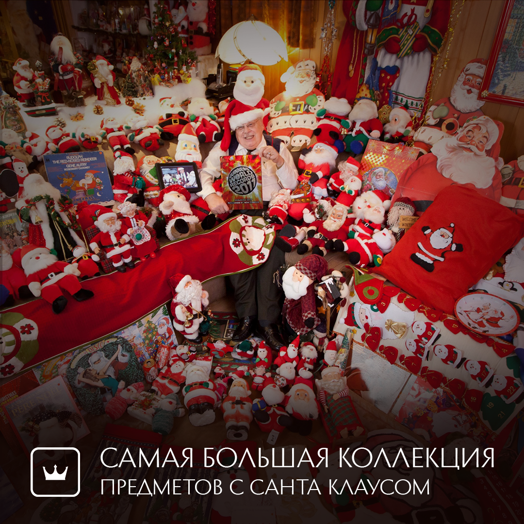 🏆 Рекорд побил владелец крупнейшей в мире коллекции сувениров, посвященных Санта Клаусу. Им является учитель географии Жан Гай Лакьер, проживающий в Канаде.