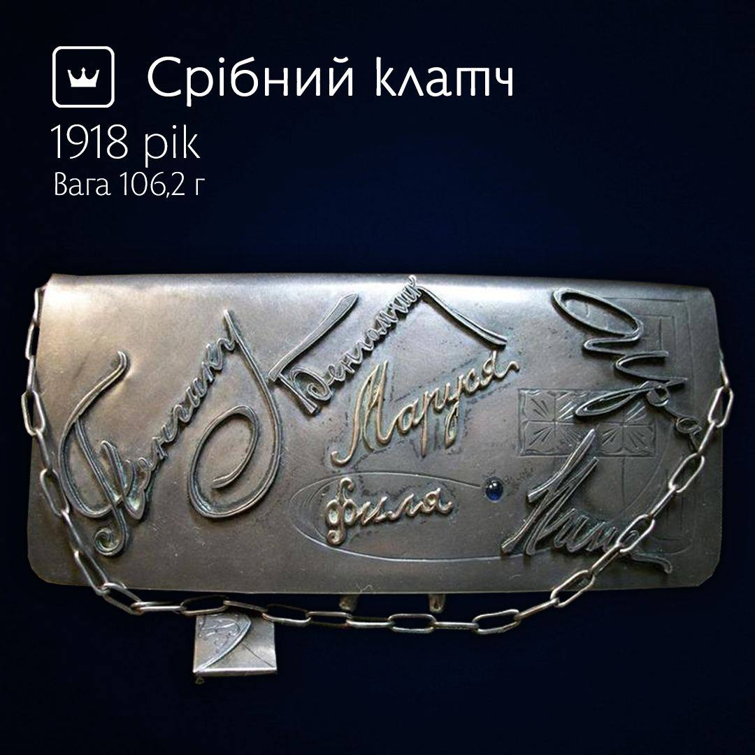 Ця крихітка важить трохи понад сто грамів, втім умістила на собі багато міток з минулого. На корпусі поряд з автографами дарителів, певне, зазначено жартівливе прізвисько отримувачки. На оригінальному ланцюжку-ремінці є маленький конвертик з монограмою «Н.П.» і присвятою, датованою кінцем 1918 року – не надто слушний час для відвідин театру та світських розваг.