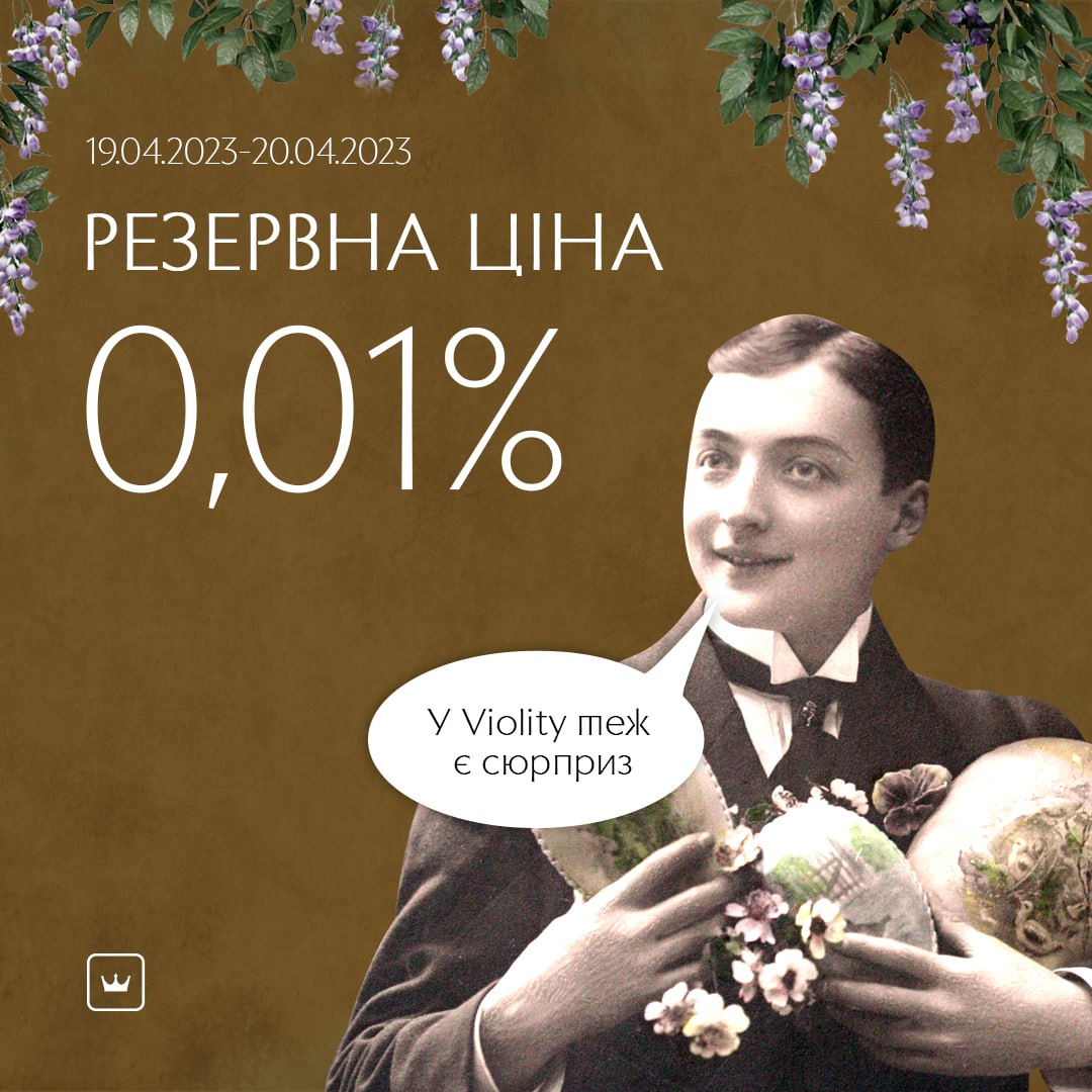 ☝️Тому для всіх наших користувачів на Віоліті для колекціонерів з 19 квітня 2023 р. з 00:01 по 20 квітня 2023 р. 23:59 плата за резерв буде майже безкоштовною — становитиме 0,01 %.