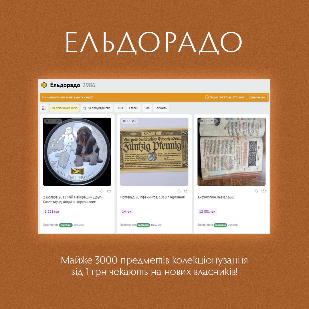 Наразі майже 3000 предметів колекціонування від 1 грн чекають на своїх нових власників.