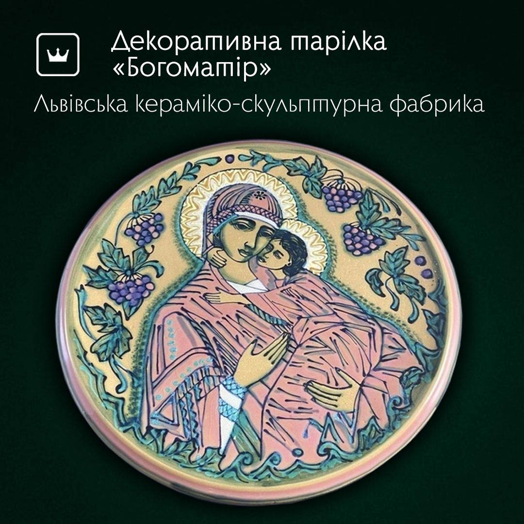 Декоративна тарілка з авторським розписом, що зображує Богоматір з дитям, належить до багатої спадщини нині ліквідованої Львівської експериментальної кераміко-скульптурної фабрики. Неповторний, впізнаваний стиль художників ЛКСФ зробив продукцію підприємства культовою серед поціновувачів художньої кераміки🏺