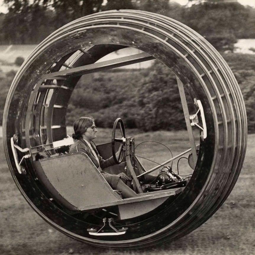 👏🏻 Знакомьтесь, это Динасфера (Dynаsphere) — моноколесное транспортное средство, запатентованное в 1930 году Джоном Арчибальдом Парвесом из Таунтона, Великобритания.