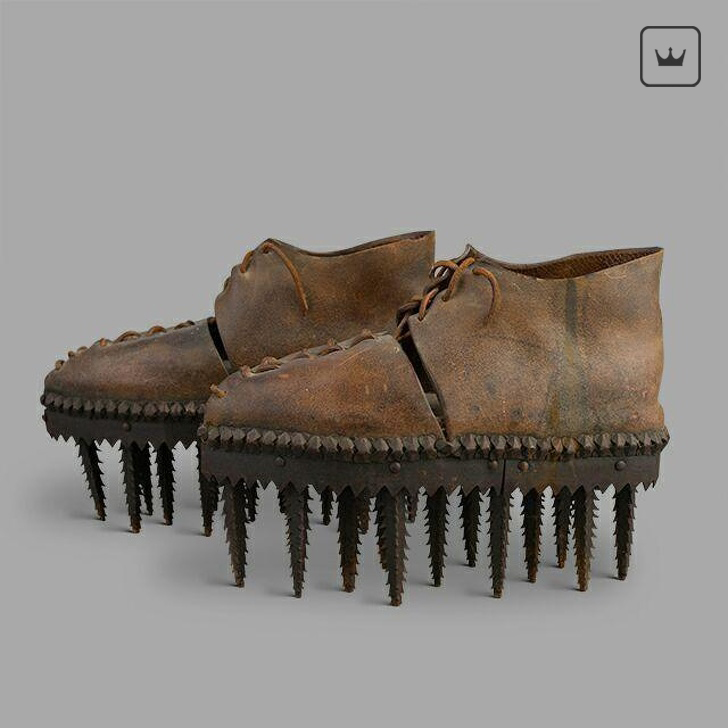 Эта обувь носила название «Soles» и представляла собой очень тяжелые туфли с подошвами, которые были покрыты острыми лезвиями. Вес ботинка при этом составлял примерно 2 килограмма. Подошва была сделана из дерева, часть, покрывающая ногу - кожаная, а лезвия - металлические.