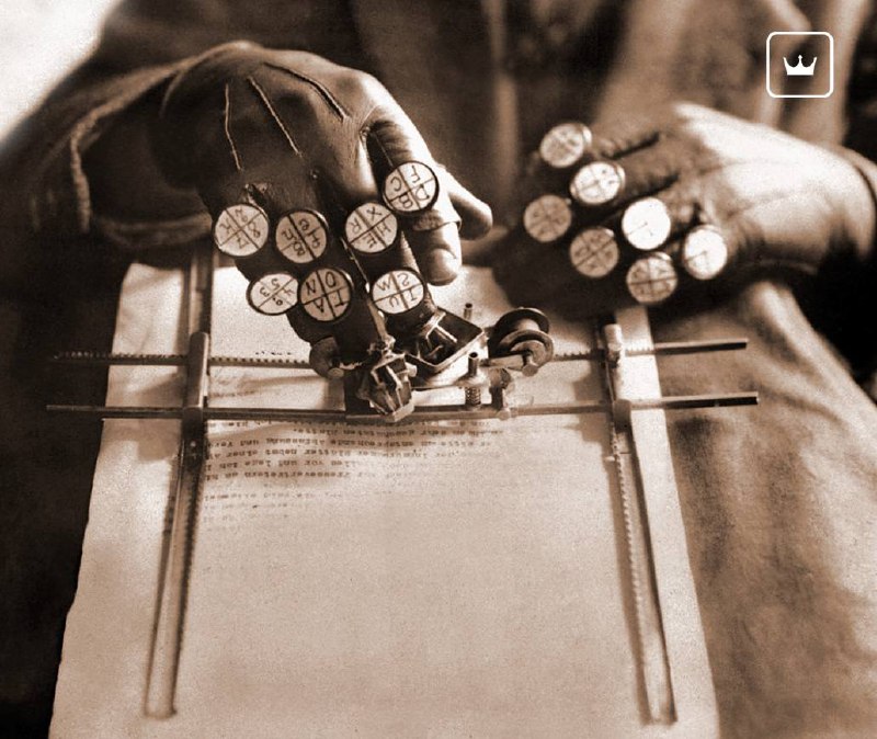 ⚙️ Устройство Гампера состояло из двух реек, накладываемых поверх бумажного листа для печати, между рейками монтировалась каретка и печатная лента. Литеры же прикреплялись к специальным перчаткам, на каждом пальце было от 4 до 8 литер. Офисный работник вдавливал каждый символ в печатную ленту и изображение появлялось на бумаге.