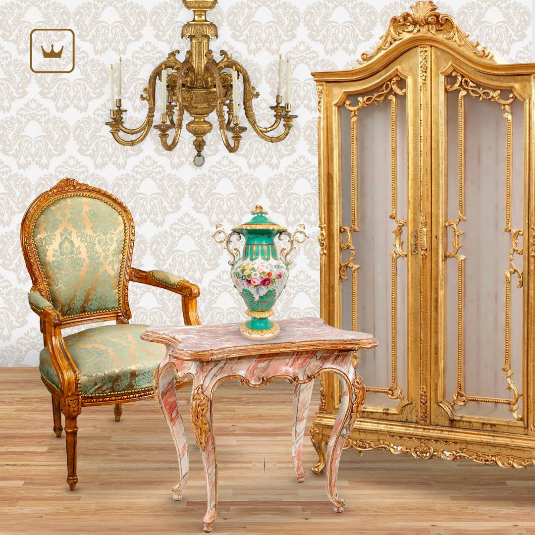 🐚 Мебель с изогнутой формой ножек, шелковой или атласной обивкой с растительным или восточным орнаментом, золочением, мозаикой, инкрустацией, художественной резьбой.
