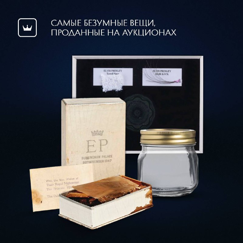 • Волосы Элвиса Пресли и кусочек его полотенца.