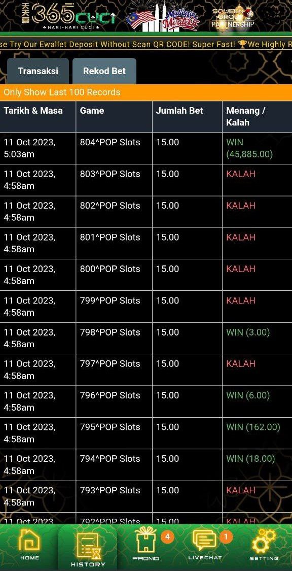 Game Win : RM5,548.10Forfeited : -RM4,993.29