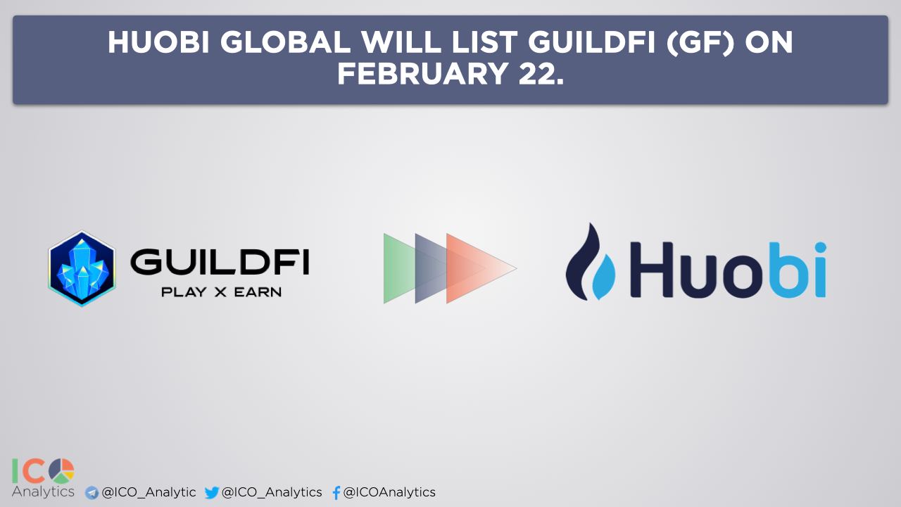 Huobi Global will list GuildFi (GF) on February 22. GF/USDT trading will go live once liquidity conditions are met.