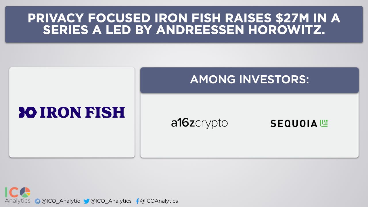 Privacy focused Iron Fish raises $27M in a Series A led by Andreessen Horowitz. With other investors in the Series A including Sequoia Capital, LinkedIn executive chairman Jeff Weiner, billionaire Met’s owner, Alan Howard, and more. The startup will launch its Incentivized Testnet in one day.