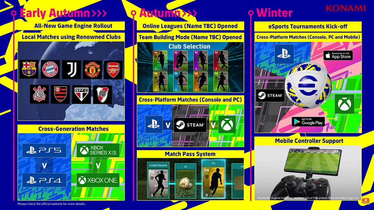 Серия Pro Evolution Soccer готовится к масштабному перезапуску: игра меняет движок, концепцию и даже название. Konami объявила, что условно-бесплатная eFootball выйдет в конце сентября, и, похоже, на старте она окажется очень бедной на контент — даже некоторые геймплейные механики внедрят чуть позже.