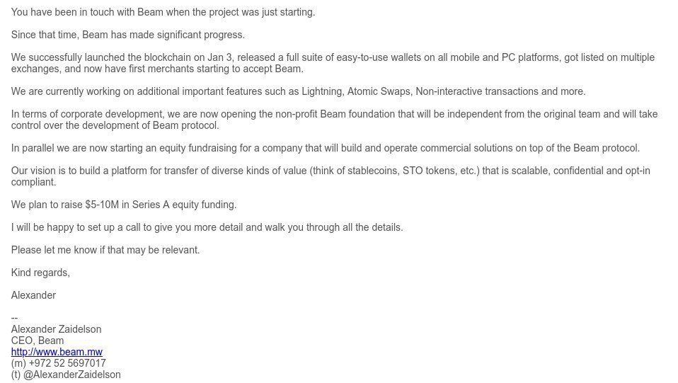 Putting that aside, they had also their own miners at the very beginning which is not really unprofitable. Talking about information assymetry. So, Beam had some 💰 from mining early as well. And let's raise more! Now, Beam is raising money to build commercial solutions on top of Beam. A different equity raise, not for the tokens. This is to speed up adoption, of course, right? They are planning for 5-10M USD for Series A 💰 Screenshots attached below. Thus, Beam is trying to raise yet another bag.