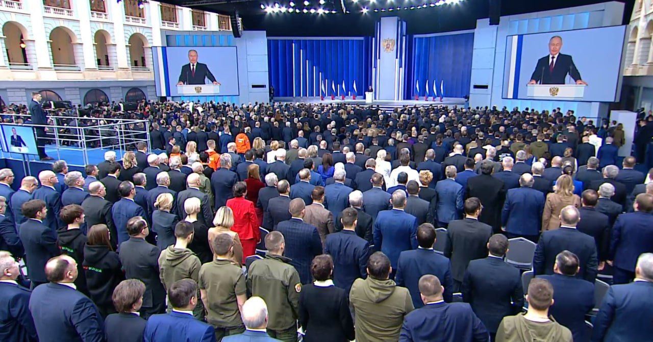 Третье, по лицам присутствующих видно, что никого уже не воодушевляет речь автократа, все понимают, к чему именно движется путинская россия и что главное не прозевать момент, когда нужно прекратить грабить и сбежать на Запад.