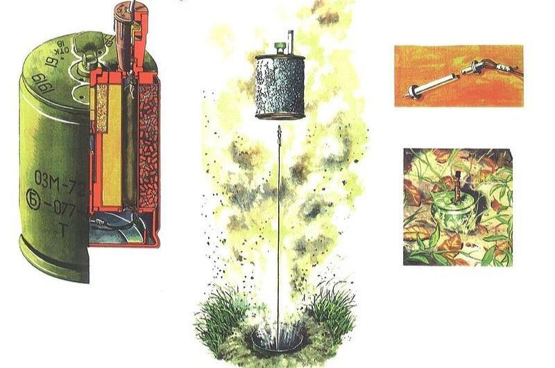 Ну, и вот, приспичило одному солдату посеркать. Залез в траву, штаны спустил. И тут- мина срабатывает. Которая, выпрыгивает из земли на метр, взрывается, и шрапнелью всех вокруг себя ложит. Лягушка, называется. ОЗМ-72, если по умному.