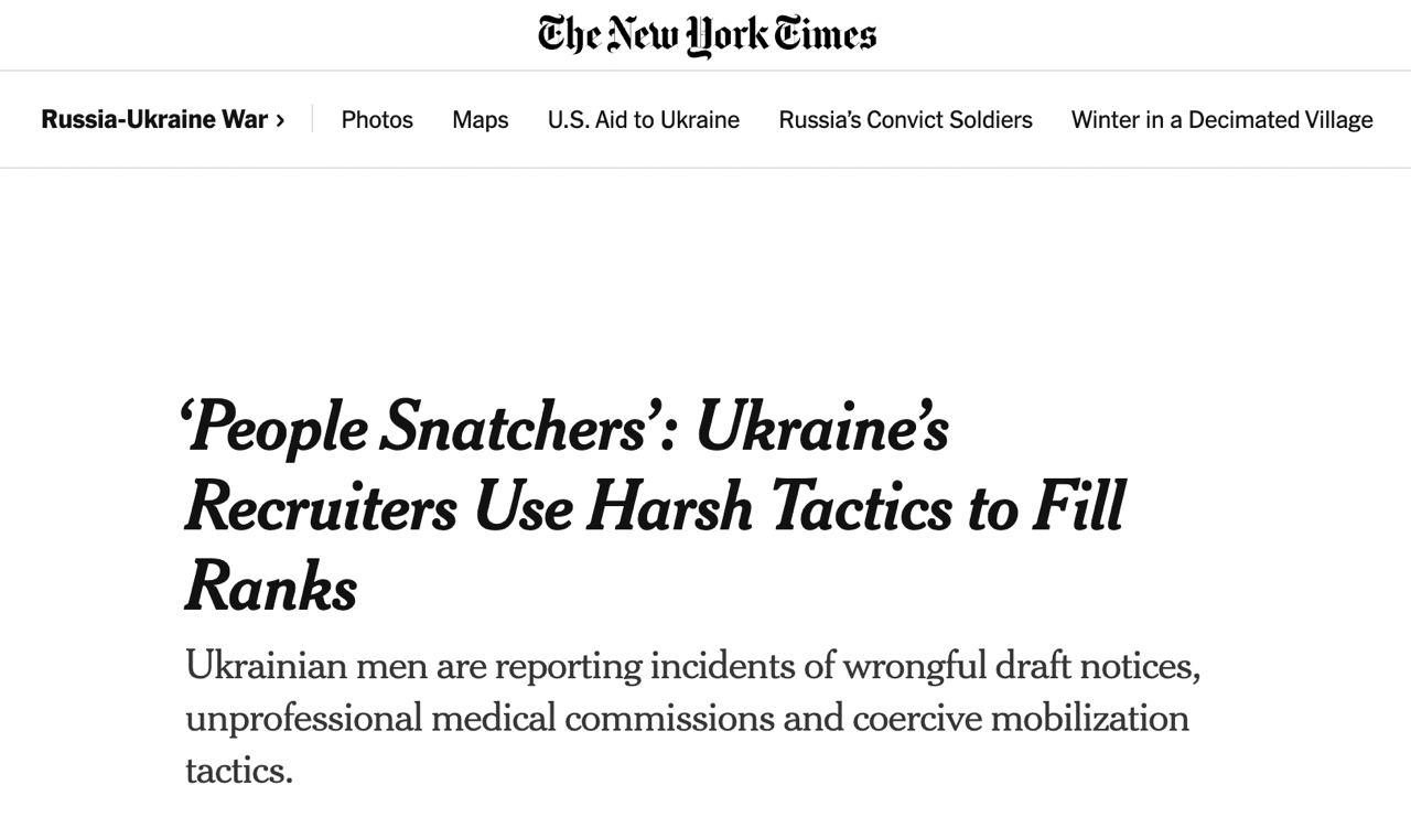 Жёсткая тактика направлена не только на уклонистов от призыва, но и на людей, которые обычно были бы освобождены от службы — признак того, что перед украинскими военными стоят серьёзные проблемы, связанные с поддержанием численности войск в войне с большими потерями, говорится в публикации.