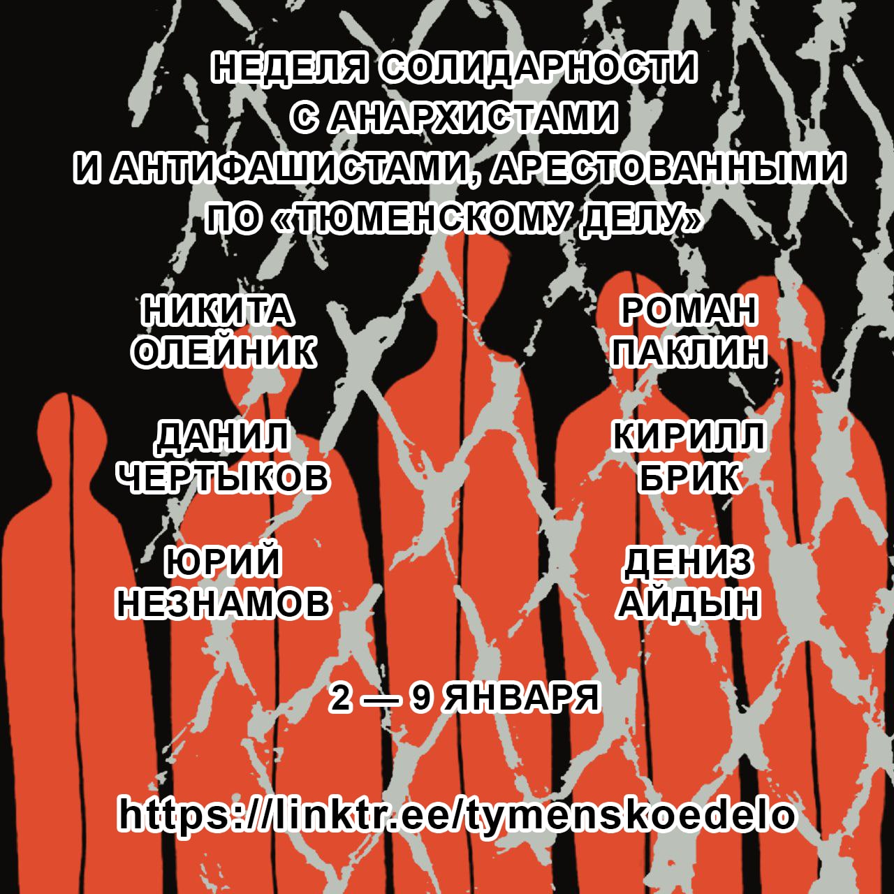 2 — 9 января: Неделя солидарности с анархистами и антифашистами, арестованными по «тюменскому делу»