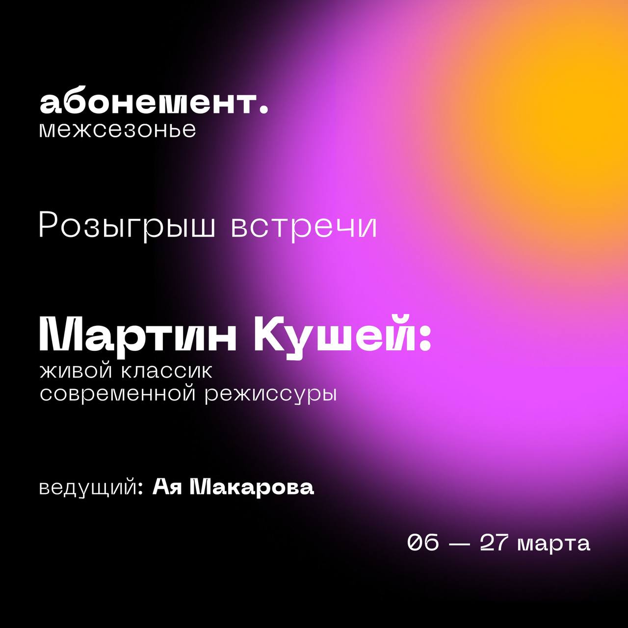 Вместе с проектом @abonementlectures разыгрываем 1 встречу из курса межсезонья.