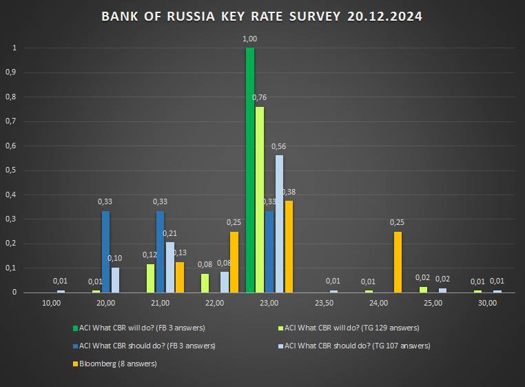 ACI Russia pinned «🔑 Подводим итоги опросов по значению ключевой ставки Банка России 🔻 Ожидания сконцентрированы вокруг решения о повышении ключевой ставки до 23%. При этом, видимая часть аудитории за сохранение текущей ставки и даже начала её снижения, если бы сами находились…»