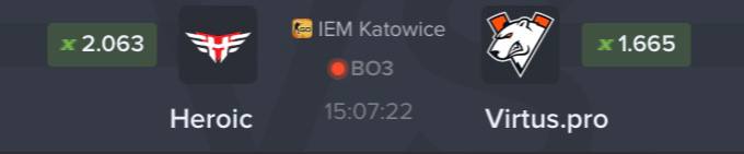 💡Друзья, это BO3 матч достаточно серьезного турнира IEM Katowice, а это значит, что игроки и команды на этом турнире будут выкладываться на полную. Виртуса уже показали невероятную игру в виде стрика из 6 побед, а Хероики лишь совсем недавно прервали свой луз стрик. По моим ощущениям Виртуса более серьезно настроены на этот матч