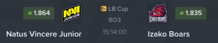 💡Ну что ж, ставили против джуниоров из Нави, теперь льем на них. Сейчас команды находятся на приблизительно равных уровнях, а соперники этих команд примерно одни и те же. Например обе команды в недавнем времени играли против SKADE, Нави их победили, а Izako Boars потерпели поражение. В целом, глядя на последние игры, можно сделать вывод о том, что Нави Джуниор сильнее своих оппонентов и должны побеждать в этом матче