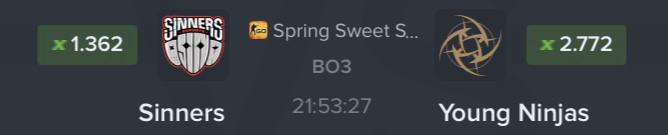 💡Друзья, ну в данной встрече безоговорочными фаворитами являются ребята из Sinners. Об этом говорит процент побед на картах, который конечно же больше процента побед у Young Ninjas. К тому же, совсем недавно эти коллективы уже встречались и Sinners одержали победу со счетом 16-6. По последним играм также Sinners превосходят. Всё говорит об их победе. Надеюсь сюрпризов не будет