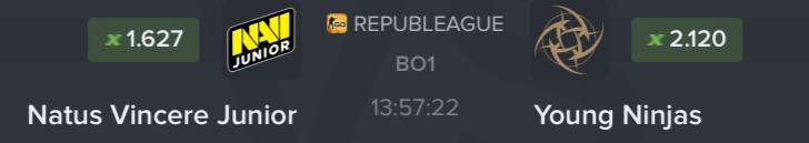 💡Друзья, ну в данный момент мы можем наблюдать доминацию команды NaVi junior. Они находятся на подъеме своей формы, это проявляется в их результативности. Всего лишь 2 поражения за последние 10 игр. Это очень хороший результат. В это время Young Ninjas претерпевают череду поражений ( 4 луза подряд ). Да и настреливают Нави получше, чем Нипы. Мне кажется, что это легчайшая для Нави джуниор