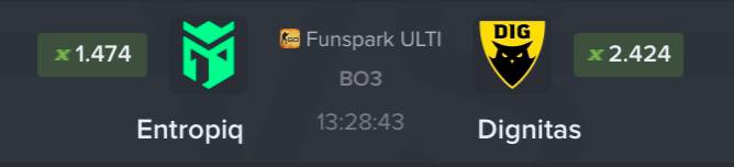 💡В последний раз эти составы встречались в марте этого года и тогда победу одержали Entropiq со счетом 2-0. Сейчас же ситуация у команд следующая. Дигнитас побеждают через раз, а Entropiq в последнее время побеждают довольно часто. Я думаю, что у наших СНГ ребят не возникнут особые трудности, чтобы очередной раз одержать победу над Дигнитас