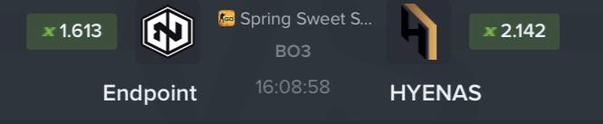 💡Первое, что хочу подметить - это то, что Endpoint еще ни разу не побеждали коллектив HYENAS, однако все эти игры были еще в прошлом году и практически все на грани. Сейчас же ребята из Endpoint набрали приличную форму, что мы можем наблюдать, исходя из последних матчей (5 побед подряд). У HYENAS ситуация колеблющаяся. Они и побеждают и проигрывают. Исходя из актуальной формы составов, могу предположить, что Endpoint скорее всего разорвет череду неудачных матчей против оппонентов и наконец-то одержит победу против датчан из HYENAS