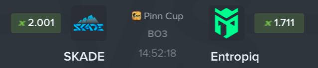 💡Как бы не хотелось верить в ребят из Entropiq, но SKADE сейчас выглядят поуверенней. Это можно сказать, к примеру, по последней встрече этих коллективов, где SKADE одержали победу. К тому же у них винстрик из трех побед. По проценту побед также вперед выходят SKADE. Не отрицаю тот факт, что Entropiq могут собрать все силы и затащить, но я больше склоняюсь к SKADE