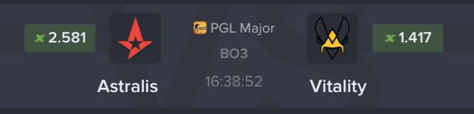 💡Игра BO3 и на этот раз по моему мнению встречаются команды, в которых выделяется очевидный фаворит. Безусловно Виталити выглядят сильнее, чем Астралис. Честно говоря и до турнира они выглядели мощнее, но после недавних результатов, а именно матчей против Heroic и NiP (1-16), у меня пропали сомнения в том, что Астралис далеко не пройдут. Я считаю, что Виталити возьмут победу в этой встрече