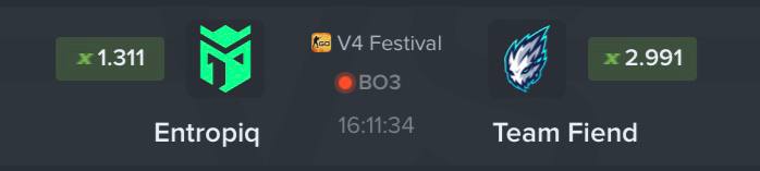 💡Друзья, понимаю, что коэффициент на этот матч небольшой, но на этот день я не нашел более лучшего и прозрачного матча. Наши ребята из Энтропик сейчас показывают очень сильную игру и в частности против команды Fiend. По результатам встреч этих команд - Энтропики забрали подавляющее большинство карт. Если не случится какой-либо казус или фейл, то это легчайшая для Entropiq