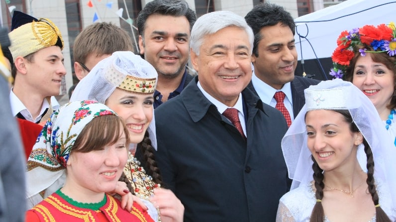 Рустам Минниханов: «Большая роль в сохранении и популяризации национальной культуры принадлежит организациям, объединенным в Ассамблею народов Татарстана, и Всемирному конгрессу татар. Отмечу, что по данным социсследований порядка 90% татарстанцев положительно оценивают состояние межнациональных и межконфессиональных отношений»