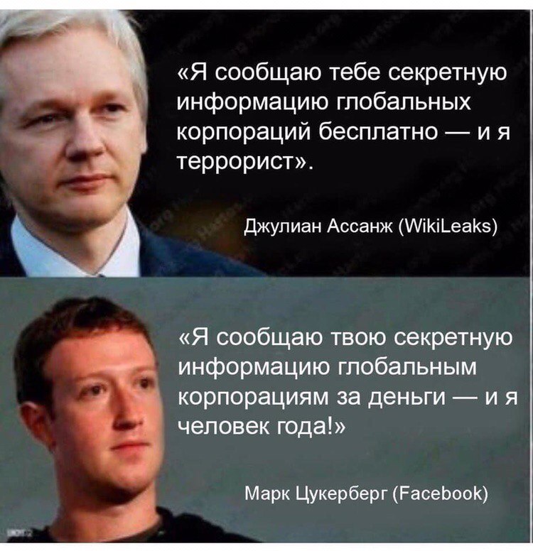 Разрушение конфиденциальности и запрос на перемены будут возрастать, и было бы круто, если бы РФ стремилась серфить по этим волнам, а не беспомощно барахтаться со своими запретами на фейк-ньюс и прочими законодательными находками клишасов. Большая Россия могла бы сделать то, что не смог в итоге маленький Эквадор - поддержать мирового Навального (только честного) и попытаться встать в авангарде борьбы за раскрытие информации о темных делишках мировых элит, сделать эту идею модным и современным инструментом своей "мягкой силы". Опасная игра, потому что щепки бы полетели и по Кремлю, ведь Джулиан и выпущенные им бесы не щадят никого, но это красивая партия - попробовать удовлетворить таким образом возникший контрглобалистский запрос многих жителей планеты.