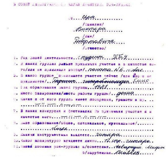Публикуем подробнейшее расследование о двух анкетах Виктора Цоя о вступлении в рок-клуб. Одна хранится у старожила Ленинградского рок-клуба Андрея Бурлаки, другую неожиданно принесли в петербургский антикварный магазин и собираются выставить на аукцион.