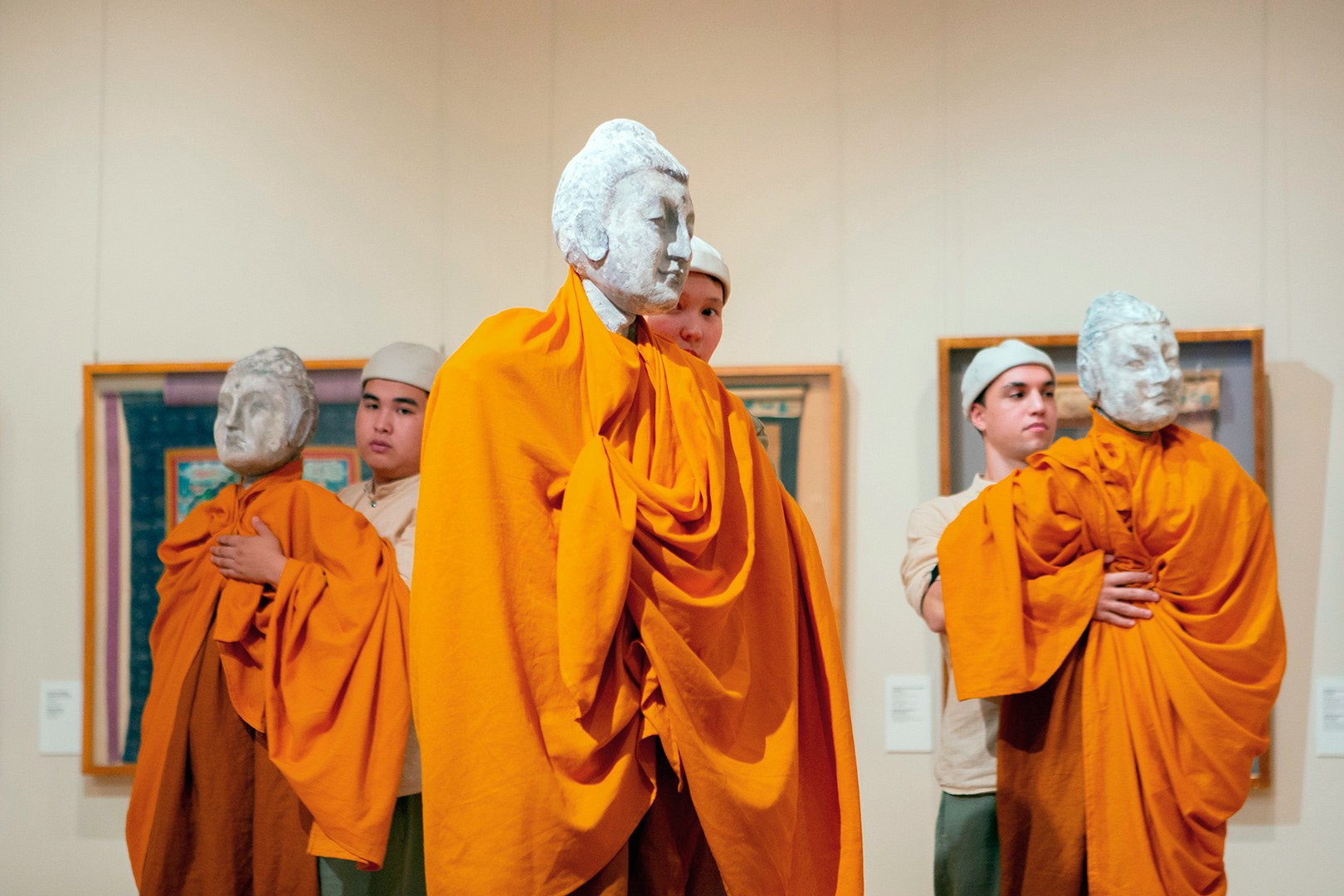 «Маршрут этой постановки проложен по девяти залам, в каждом из которых разворачивается своё действо с символическим названием: «Баланс», «Оазис», «Просветление Будды», «Бог в каждой вещи»... Это может быть пластический этюд или небольшое кукольное представление, групповой перформанс или короткий моноспектакль»,