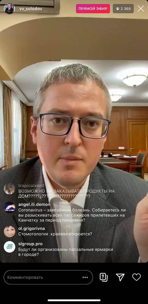 ‼️Врио губернатора Камчатского края Владимир Солодов на своей странице в сети Инстаграм разместил пост о фейковом телеграмм-канале, названный его именем‼️