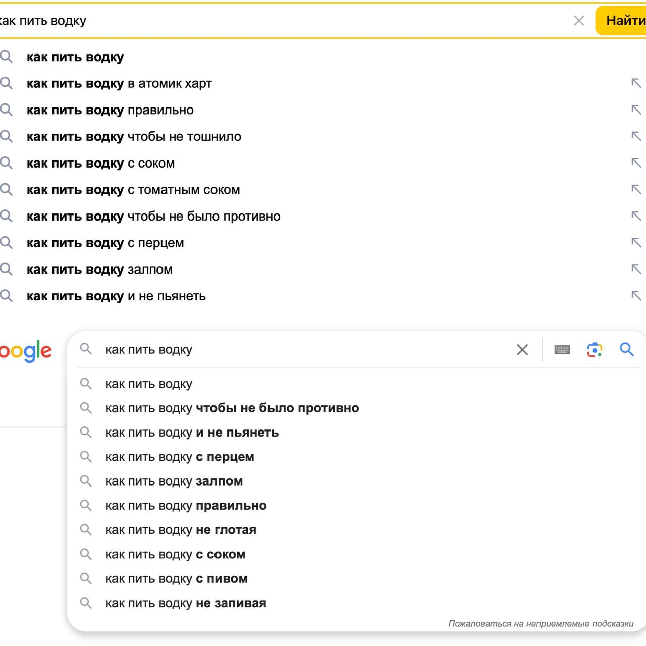 P.S. Интересно, что и Гугл, и Яндекс показывают, как много людей хотят узнать, как пить водку и не пьянеть. Вопрос на миллион! ☺