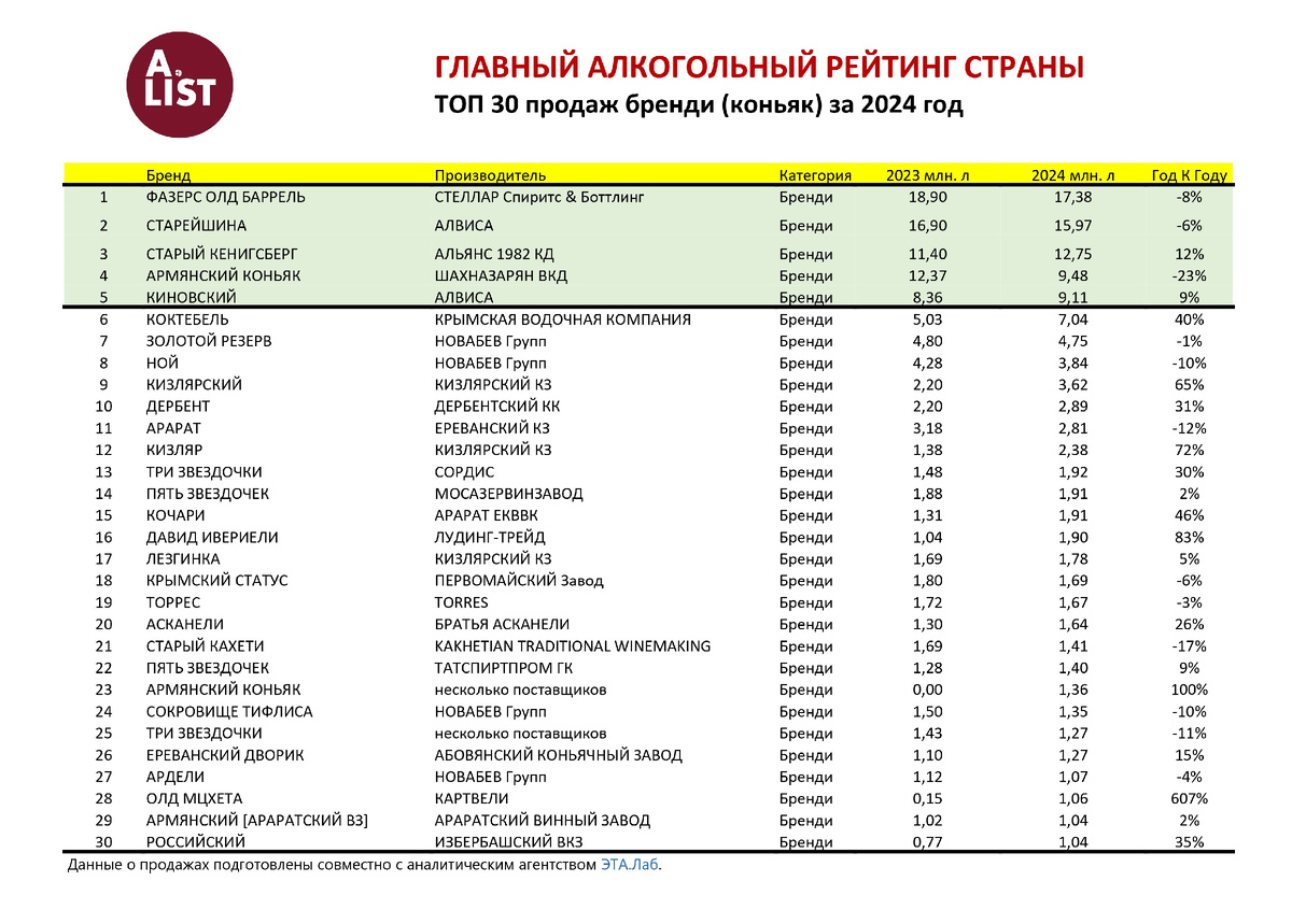 Всем привет! С вами «Коньячный Маньяк» специально для «A.LIST» с обзором итогов продаж бренди и коньяка за 2024 год.