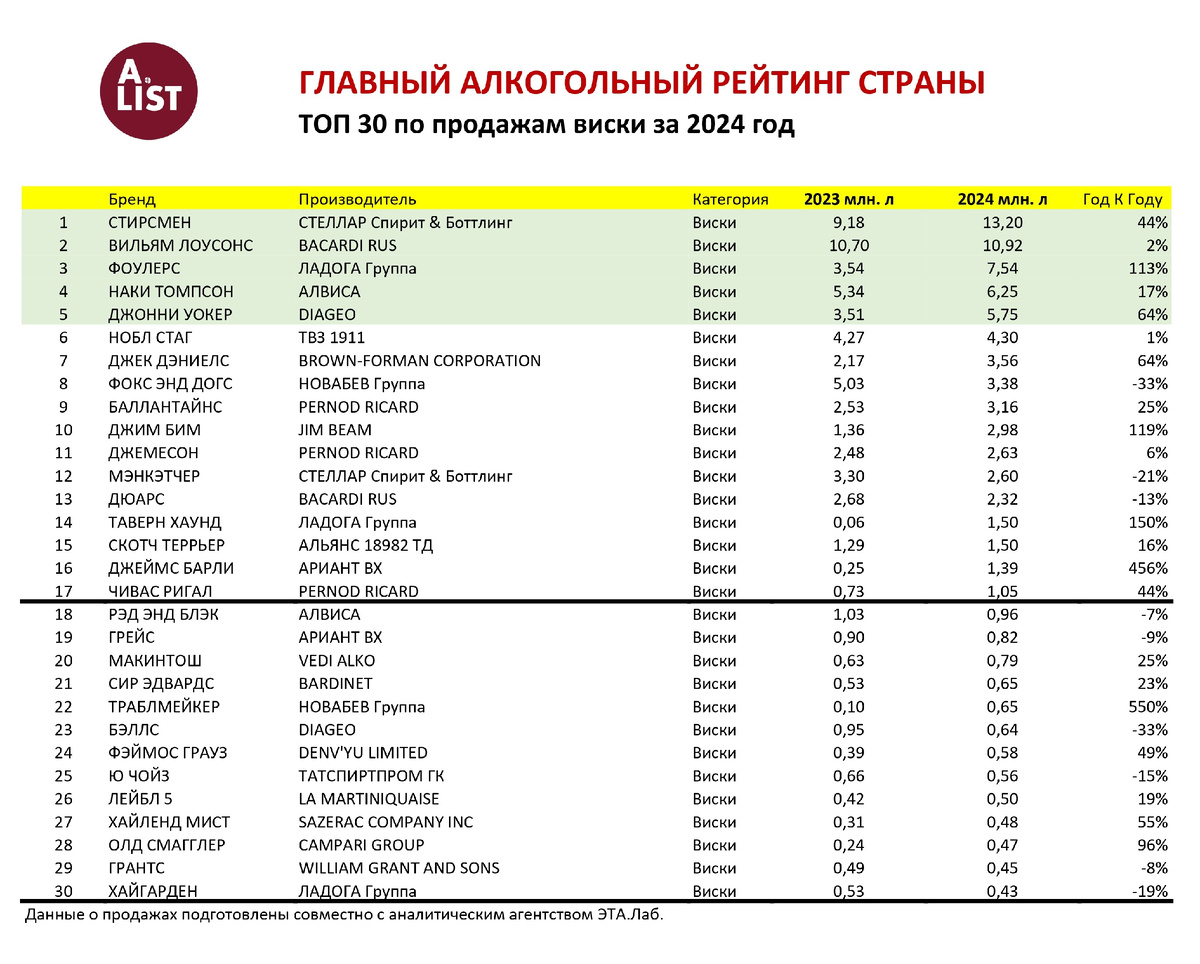 Наш проект «A.LIST» (ранее «Рейтинг. Все о крепких напитках») — это частная инициатива, направленная на популяризацию качественных напитков российского производства и предоставление объективной информации о производителях и их продукции. Мы стартовали в начале 2023 года, чтобы разобраться какие новые напитки заполнили полки наших магазинов взамен ушедших иностранных товаров.