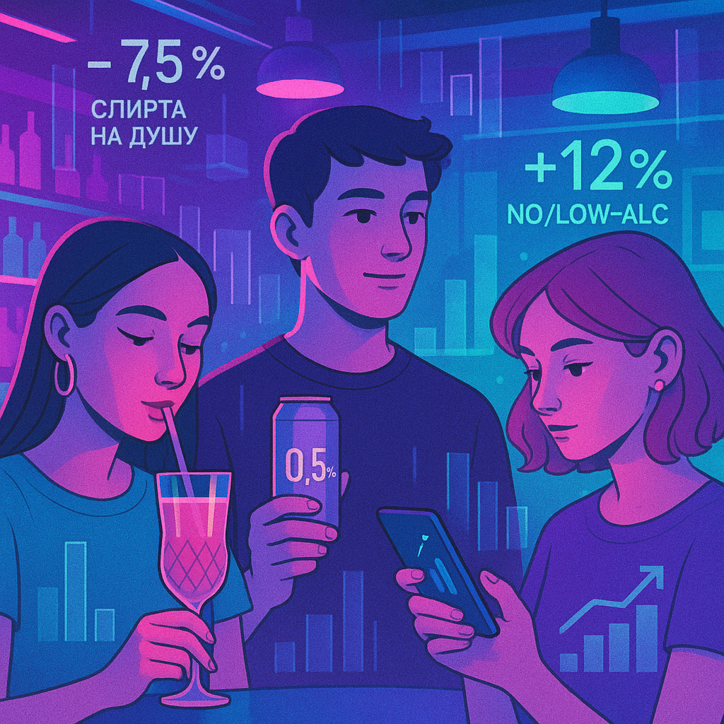 Исследования РОМИР показывают: зумеры реже пьют дома, но чаще выбираются «на бокал» в модный бар — важный сдвиг для каналов сбыта.