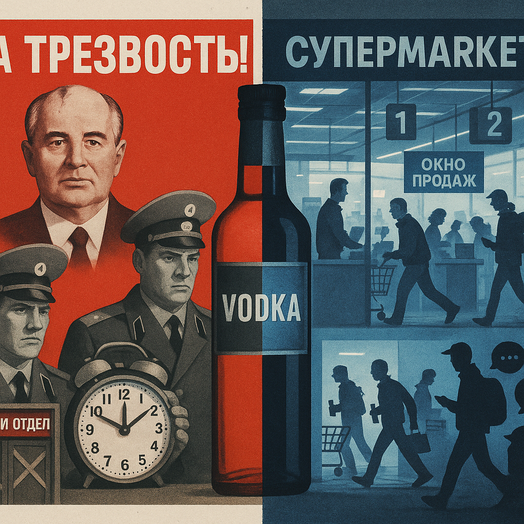 Горбачевская антиалкогольная кампания 1985-го — наш главный урок того, как административный напор, без экономического расчета, ведет к системному кризису. Начинали за здравие нации, но благие намерения обернулись расцветом теневого рынка, дефицитом бюджета и социальным напряжением. Кампанию свернули не потому, что идея трезвости плоха, а потому что выбранные методы оказались контрпродуктивными.