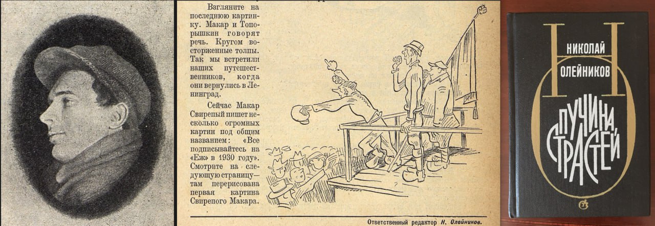 Олейников был редактором знаменитых детских журналов «Ёж» и «Чиж», и сам появлялся на страницах в образе Макара Свирепого (на рисунке рядом с ним Хармс с неизменно трубкой).
