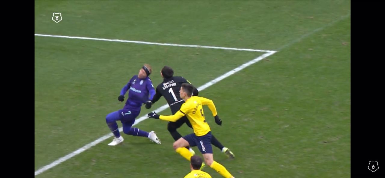 Верно назначен пенальти в ворота гостей: вратарь Медведев не сыграл в мяч, но грубо руками попал в голову соперника. Удивляет только то, что Карасев не увидел этот эпизод сразу, а 11-метровый назначил только после рекомендации ВАР.