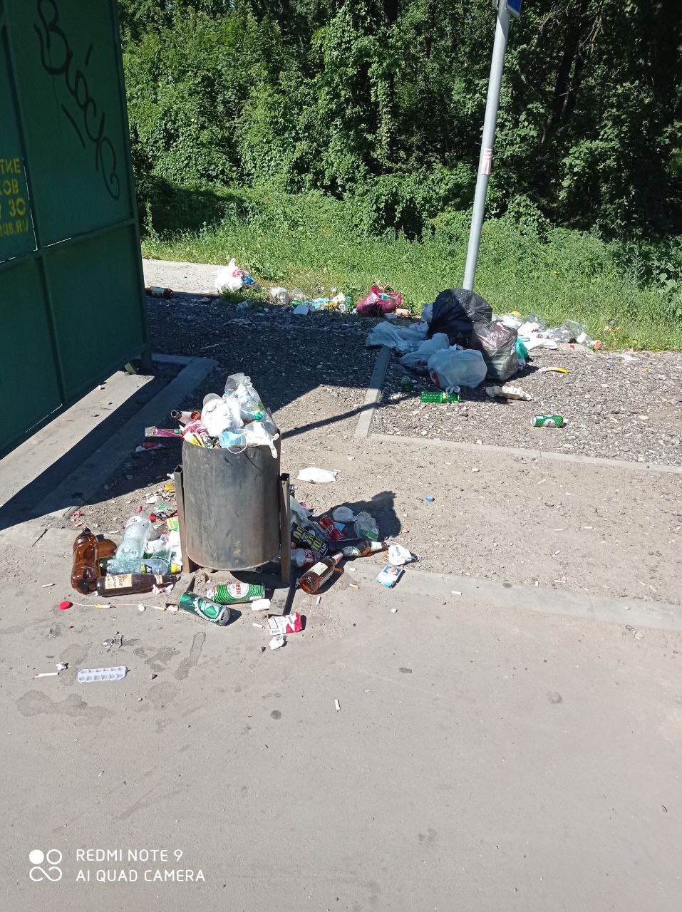 Можно конечно рассуждать, что люди свиньи и сами бросают мусор, но посмотрите на мусорку - она битком, именно поэтому мусор переваливается через край и летит в посадки. Коммунальные службы просто напросто положили болт на эту остановку и походу решили, что мусор вывозить не надо, сам как-нибудь рассосётся.