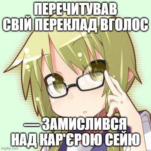 - однак краще спитати поради в спільноті дружніх перекладачів: у нашому чаті (ми є в телеграмі, фейсбуці, твітері) або на дискорді в "Осередку UA манґи";