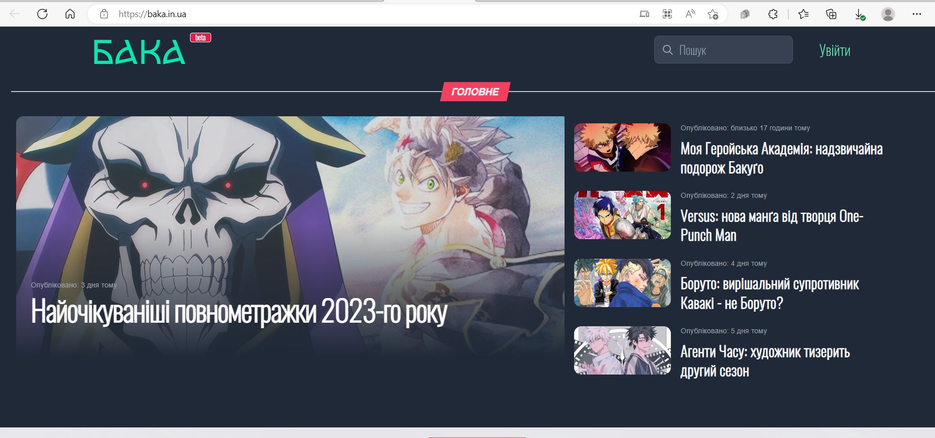 Бака — це нова україномовна аніме-платформа з новинами, статтями та інтерв'ю про аніме, манґу, японську культуру тощо.