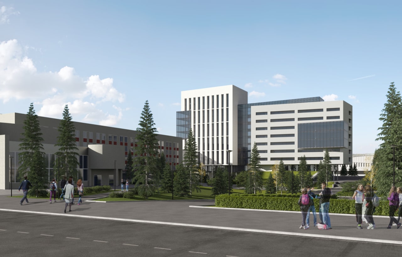 🔸 В северном корпусе разместят учебные аудитории, гардероб с переходом в актовый зал на 700 мест. Актовый зал планируют сделать частью нового ландшафта с эксплуатируемой кровлей. Летом его можно будет использовать как амфитеатр для проведения концертов.